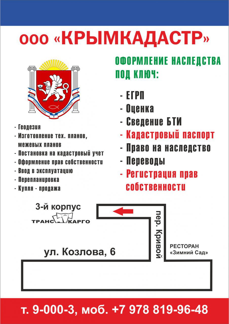 ООО «КРЫМКАДАСТР»: оформление наследства под ключ, регистрация перехода прав собственности, вынос границ в натуре