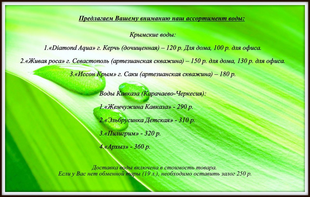 *-входит оборотная тара ( Бутыль 19л.) + Крымская вода ( на Ваш выбор).