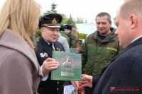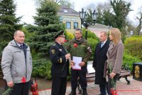 Волонтеры прочитали стихи и руководство города вместе с гостями из Ейска возложили цветы к Вечному огню.