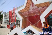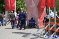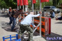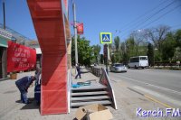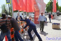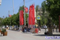 В Керчи 4 мая, на улице Кирова, установили трибуну со звездой. Также, на гостиницу «Керчь» повесили копию Знамя Победы.