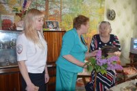 Вдовы фронтовиков, ветеранов ОВД Лидия Белоусова и Клавдия Чугунная являются участниками трудового фронта. Война не обошла стороной и их семьи. Со слезами на глазах они принимали поздравления и слова благодарности за Великую Победу, за мужество и героизм своих супругов, проявленные во время войны и службы в органах внутренних дел.