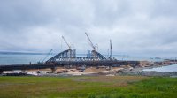 В это время плавучие опоры вернутся обратно к керченскому берегу, их перепроверят и переоборудуют, после чего в той же последовательности будет перевезено и смонтировано второе арочное пролетное строение - автодорожное.