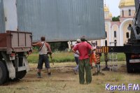 В Керчи, 4 июля в Комсомольском парке, между Дворцом Пионеров и церковью, установили две бытовки для сторожа и рабочих. Кроме этого, вдоль всей территории, которою хотят огородить, подготавливают ямы для установки опор забора.