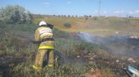 Также, достаточно крупное загорание сухой растительности произошло в пгт. Щелкино. Днем, 10 июля, поступил сигнал, что в районе Энергетиков, на территории, примыкающей к АЗС горит сухая трава.