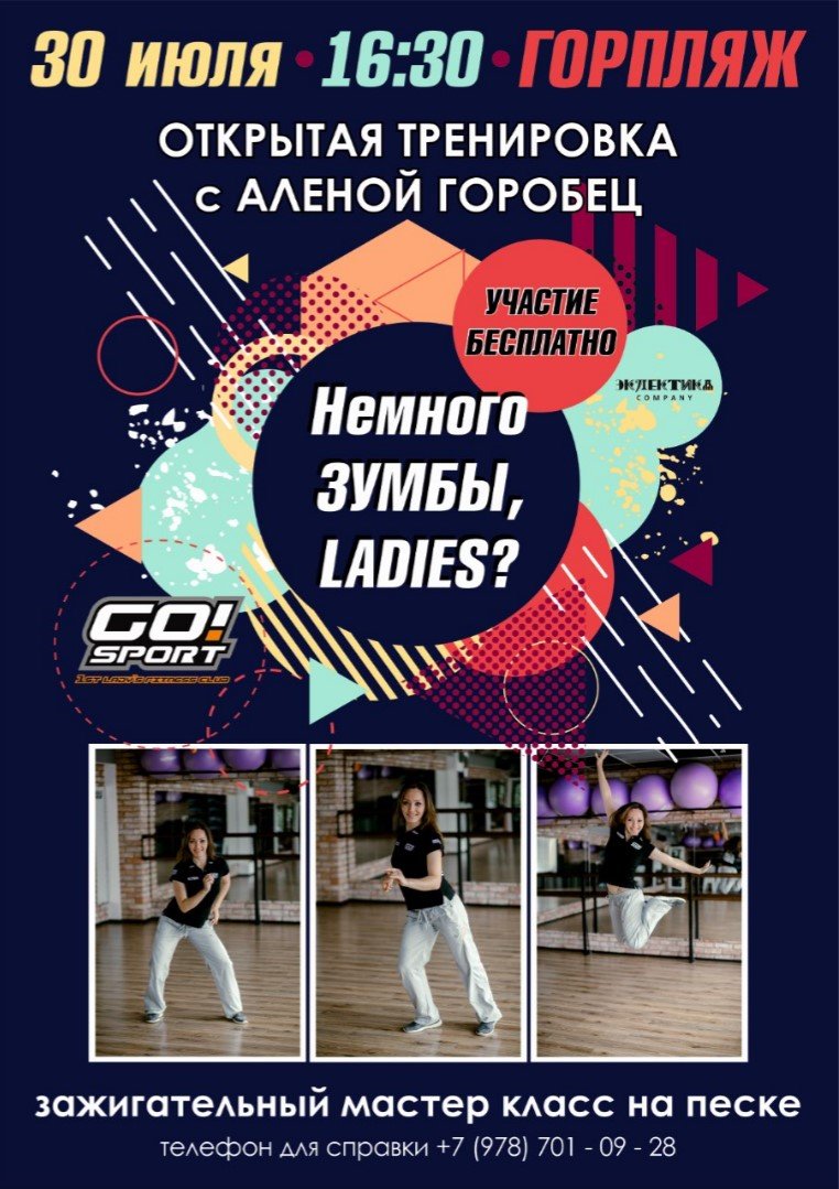 Первый женский фитнес клуб Go!Sport приглашает Вас принять участие в открытом мастер классе на песке от Алены Горобец.
