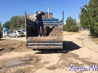 В Керчи, 20 июля на улице Ворошилова, во дворе многоэтажного дома №23, рабочие засыпали на дороге ямы землей, - передает Керчь.ФМ.