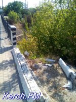 На мосту при въезде в Керчь по Чкалова разрушена часть забора. Об этом сайту Керчь.ФМ сообщили постоянные читатели. Керчане предполагают, что забор разбили не вандалы, а, скорее, автомобиль влетел в него.