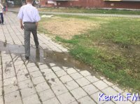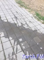 В Керчи 15 августа, на улице Ворошилова, около дома №23, вдоль тротуара более полумесяца течет питьевая вода. Она стекает по пешеходной дорожке и по газону. Порыв произошел 23 июля.