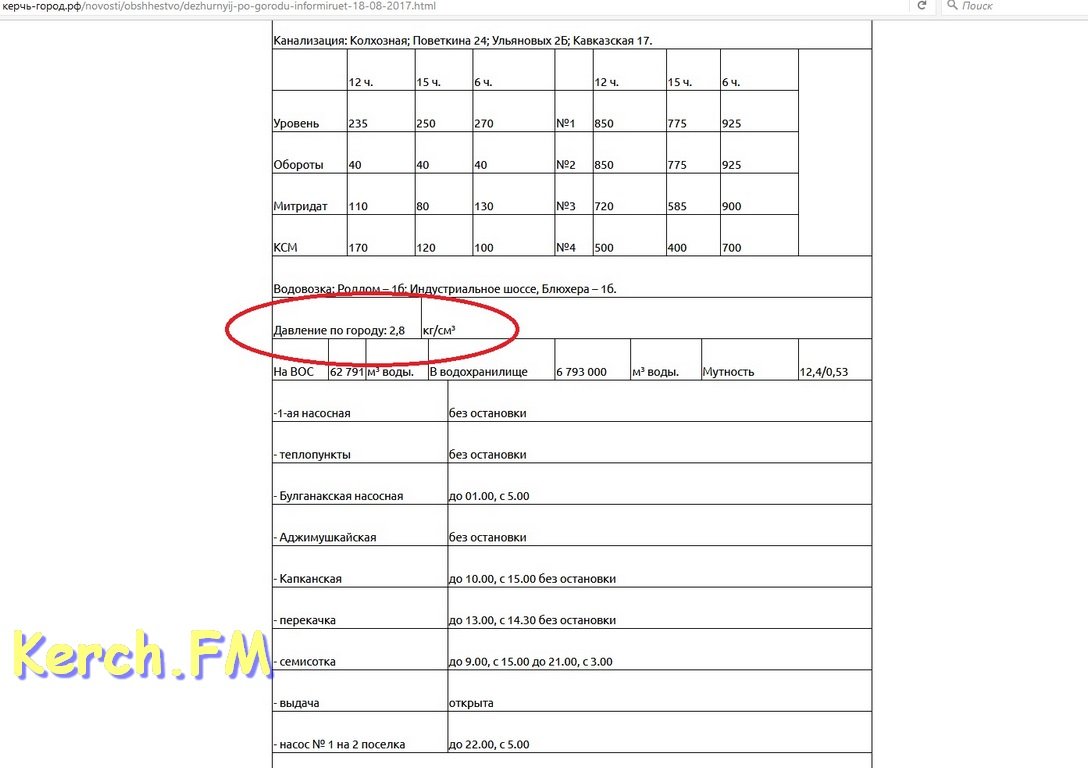 Следует отметить, что водоканал предоставляет информацию о давлении воды в городе равном 2, 8 кг/куб.см, тогда как нормативы рассчитаны на величину кгс/кв.см.