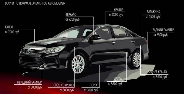 Полный спектр услуг по покраске автомобиля вам обойдётся по доступной цене, а, вместе с этим, вы получите гарантию, высокое качество и, несомненно, обновлённый автомобиль, который будет вас радовать отличным внешним видом.