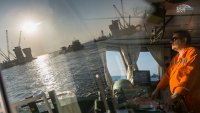 Накануне строители подготовили арку и погрузили ее на плавучие опоры. Рано утром конструкцию начали транспортировать к створу моста. Арку транспортируют на пять километров от берега, в этой части операции участвуют более десяти судов и свыше 100 человек. Затем моряки заведут плавсистему в створ между фарватерными опорами и зафиксируют якорными тросами. В это время на опорах будут полностью готово все необходимое грузоподъемное оборудование.