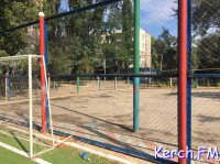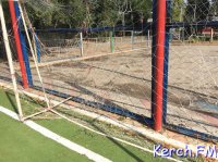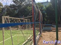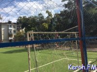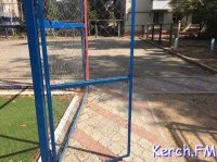 В Керчи прошло три месяца после открытия отремонтированной детской площадки на улице Юных Ленинцев. Неизвестные сделали дыры в сетке, которая ограждает площадку. Также, футбольные ворота потеряли своей прежний вид. Сетка на них находится в ужасном состоянии.