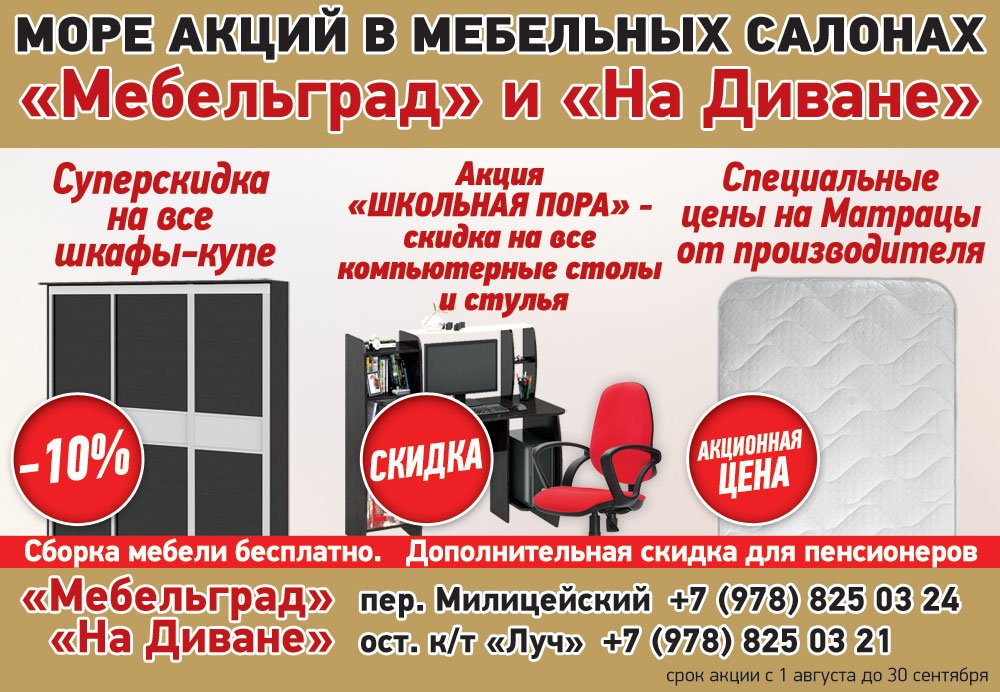 Салон «Мебельград»: пер.Милицейский, 22, (р-н центр.рынка) +7 (978) 825-03-24