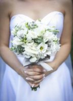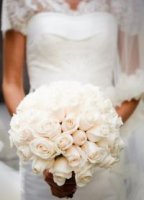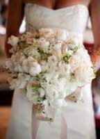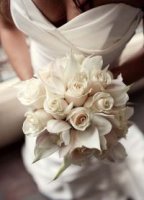 Белый свадебный букет можно сделать из орхидей, пионов, роз, ромашек или более необычных растений - хлопчатника, люпина, фуксии.
