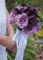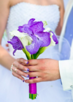 Красивым контрастом на фоне белого платья будет выделяться синий или фиолетовый букет.