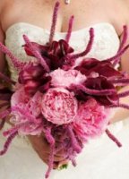 Его женственность, нежность и красота не оставит равнодушными никого. Розовые свадебные букеты невесты делают из гербер, пионов, роз, лютиков, лилий, амаранта, георгин, орхидей.
