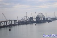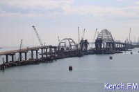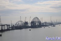 В Керченском проливе продолжаются активные работы по установке автодорожной арки на Крымский мост. Как передаёт корреспондент Керчь.ФМ с места событий, сейчас арку готовят завести в створ моста для подъема на проектную высоту.