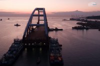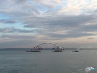 Моряки готовят плавсистему к следующему многочасовому этапу - заводу плавопор с арочным пролетом в створ между фарватерными опорами Крымского моста. В целом морская операция по установке арки в проектное положение займет до трех суток.