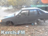 Во дворе керченской многоэтажки разбирают брошенную иномарку