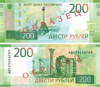 На банкноте номиналом 200 рублей изображены символы Севастополя — памятник затопленным кораблям и вид на Херсонес Таврический, а на банкноте номиналом 2000 рублей — знаменитые места Дальнего Востока — мост на остров Русский во Владивостоке и космодром "Восточный" в Амурской области.