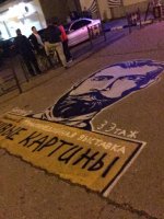 Но сегодня утром портрет зарисовали черной краской.