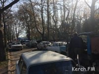 Виновниками затора стали припаркованные машины, которые занимают одну полосу дороги и грузовой автомобиль коммунальщиков. Некоторые керчане пытались объехать затор по тротуару.