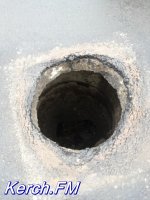 В Керчи 6 ноября на дороге по ул. Орджоникидзе находится открытый люк. Как передает корреспондент Керчь.ФМ, он был накрыт тонким листом железа, который сейчас находится в нескольких метрах.