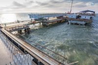 Строители отчитались о завершении монтажа одного из четырех морских пролетов автодорожной части Крымского моста. «Нить» металлоконструкций длиной более километра расположена на одной высоте - около 4 метров над уровнем воды. Всего над акваторией будет более 6 км из 19 км трассы. Об этом сообщает инфоцентр «Крымский мост», - передает Керчь.ФМ
