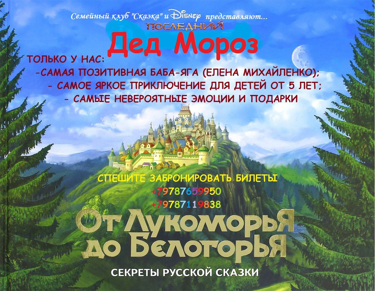 А по мотивам фильма «Последний богатырь» детки от 3 лет погрузятся в невероятные приключения вместе с Бабой Ягой и Водяным. И, конечно же, не обойдется без поиска подарков вместе с Дедом Морозом.