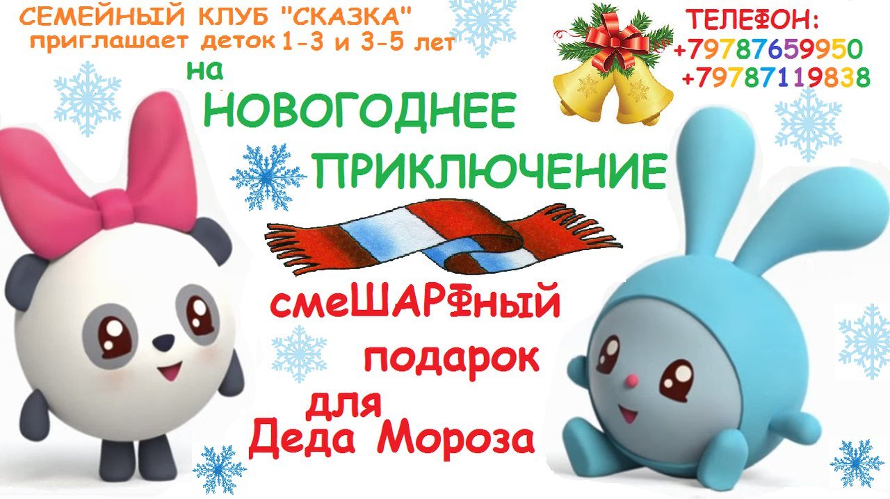 Семейный клуб «Сказка» приглашает деток от года на Новогодние утренники с Малышариками, а деток от 3 лет на невероятные приключения с Бабой Ягой и Водяным!