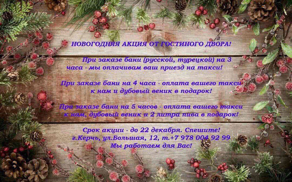 При заказе бани (русской, турецкой) на три часа - мы оплачиваем ваш приезд на такси.