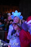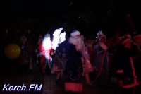 После парад прошел к главной елке города. Керчан поздравили Дед Мороз от завода «Залив», от МЧС Керчи и дед Мороз-казак. Также на сцене участники озвучили свои пожелания.