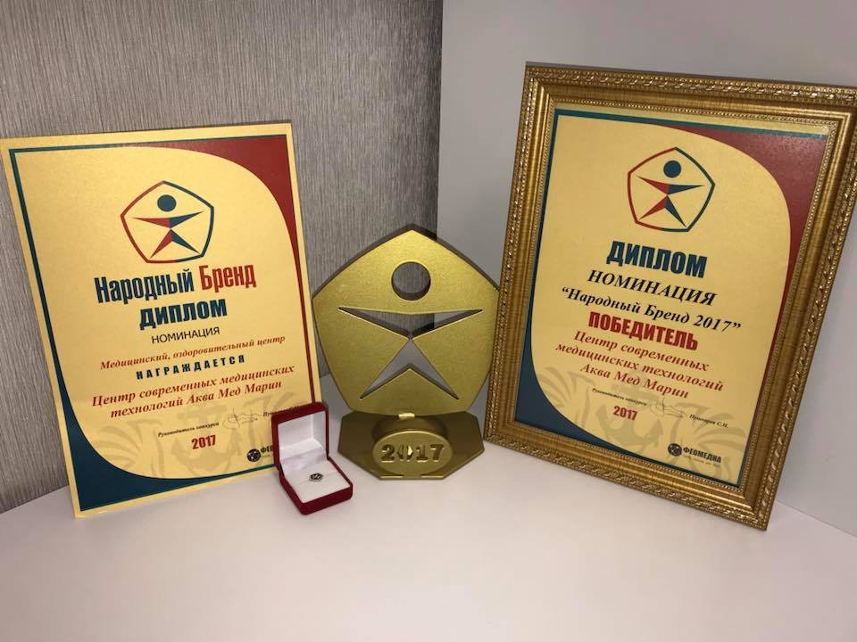 Уважаемые керчане, разрешите выразить огромную благодарность за Ваши голоса, отданные за Центр современных медицинских технологий «АКВА МЕД МАРИН» в проекте «Народный бренд 2017»! Ваше неоценимое доверие дало нам возможность победить в этом марафоне! Наш центр удостоился первого места и золотого диплома не только в своей номинации - «Медицинский, оздоровительный центр», но и дополнительно имел честь получить титул - «Победитель», как одно из трех лучших предприятий города в 40 номинациях, за которое керчане отдали самое большое количество голосов! Для нас - это очень высокая награда, учитывая, что мы самое молодое предприятие среди представленных, работающее всего лишь год! Считаем эту победу большим авансом доверия наших любимых клиентов на будущее, а также результатом слаженной командной работы нашего профессионального коллектива! Теперь мы с гордостью можем сказать - НАС ВЫБИРАЮТ КЕРЧАНЕ! Ещё раз благодарим за тот стимул развития, который Вы дали нам этой победой!! Будем всегда соответствовать Вашим ожиданиям!!!