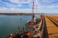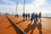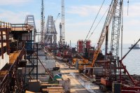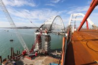 Фото со стройки моста сделали накануне во время посещения Крымского моста министром транспорта РФ Максимом Соколовым. Кроме моста, министр проинспектировали ход строительства автомобильных подходов к нему.