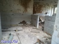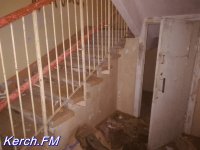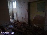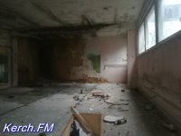 Возле самого здания, которое разбито, у которого частично рушится отделка внутри и снаружи и выбиты окна, мы увидели дымок и услышали голоса. Хотя журналисты сайта Керчь.ФМ не из робких, но мы все же не стали заходить в эту часть здания, чтобы "не испортить незваными гостями" новогодние праздники людям. Также, практически в каждой комнате видны следы огня на стенах и потолке.