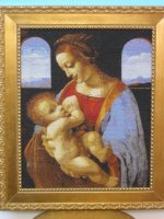 Жанровое разнообразие впечатляет: автор вышивает и натюрморты, и пейзажи, разрабатывая с 2001 года индивидуальные рисунки-схемы для своих творений. Используя в рукоделии, как основное изобразительное средство, канву, иглу и нити мулине, Валерий создает вышитые репродукции картин известных живописцев прошлых веков, среди которых есть произведения Леонардо да Винчи. На выставке представлены удивительные по степени воздействия на окружающих работы: «Мона Лиза», «Дама с горностаем», «Мадонна Литта».