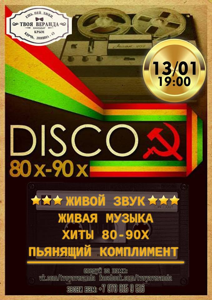 Друзья, 13 января в 19.00 «Твоя Веранда» приглашает всех гостей провести Старый Новый Год с нестареющими хитами 80-90х, которые подарят Вам хорошие воспоминания, чудесную музыку и атмосферу того времени.