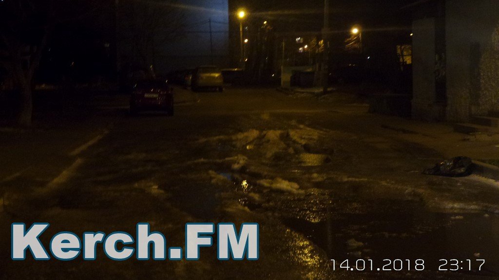 В редакцию Керчь.ФМ обратился постоянный читатель, который рассказал, что порыв воды на въезде во двор по ул. Ворошилова 1/1 превратился в ледяное озеро.