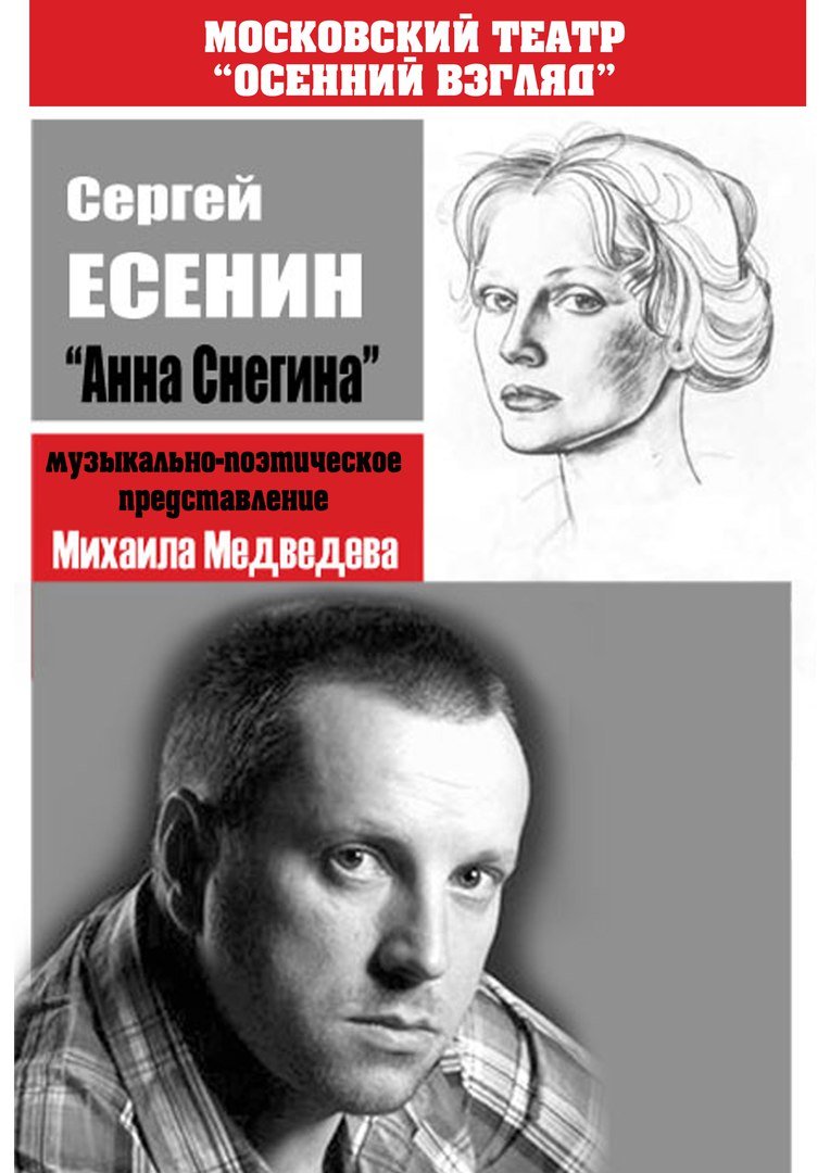 Во дворце культуры «Корабел» 19 января в 18 часов состоится музыкально-поэтический вечер артиста театра и кино, основателя московской творческой группы «Театр «Осенний взгляд» Михаила Медведева. Вниманию зрителя будет представлен моноспектакль «Анна Снегина» по одноименной поэме Сергея Есенина.