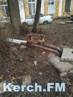 «На ул. Войкова, близ завода, находится старое и красивое здание бывшего Клуба Энгельса. В прошлом году его использовали для съёмок худ. фильма в нашем городе. Висели декорации. Также в здании арендуют помещения разные организации. Недавно там прошёл ремонт и, как видно с улицы, появились спальные места, душевые и т.д. Что-то вроде мини-гостиницы. Как мы узнали, там живут приезжие люди, работающие на стройке Моста через пролив. И с тех пор жители стали жаловаться на то, что вокруг Клуба появилось много мусора. Он валяется везде. На фундаменте вокруг здания стоят бутылки. За Клубом во дворе есть контейнеры, но почему-то, видимо, ими не хотят пользоваться. Дворники тоже здесь давно замечены не были. Напротив Клуба не так давно стали стоять маршрутные такси 40-41. Они тоже мусорят и ещё вот теперь мостостроители. Раньше на нашей окраине было гораздо чище!  На фото также видны открытые трубы отопления возле здания Клуба, которые отапливают улицу. Хотелось бы поправить эту ситуацию», - рассказала керчанка.