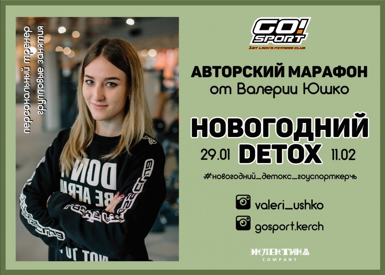 По желанию Вы можете делиться своими достижениями на страничках в INSTAGRAM, прописывая под фотографиями хештег марафона - #новогодний_детокс_гоуспорткерчь (*актуально для тех, у кого открытый аккаунт).