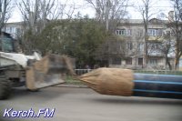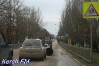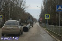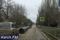 В Керчи трактор тянул за собой трубу по асфальту