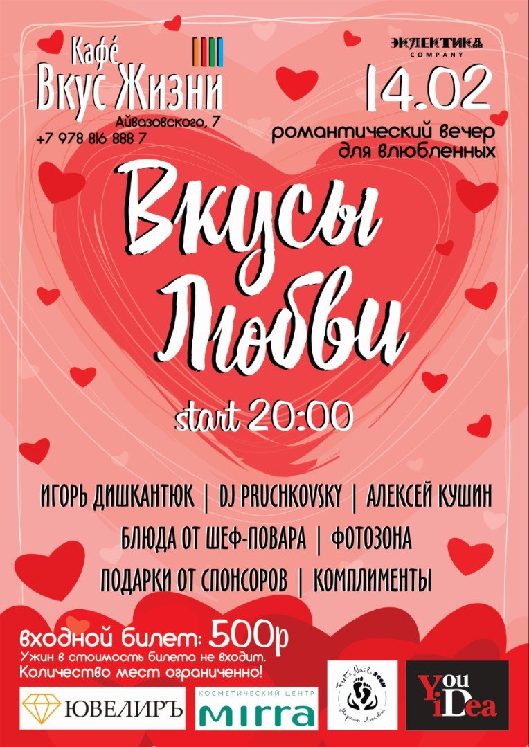 Приглашаем влюбленные пары, шумные компании, семьи посетить романтический вечер - "Вкусы Любви"!