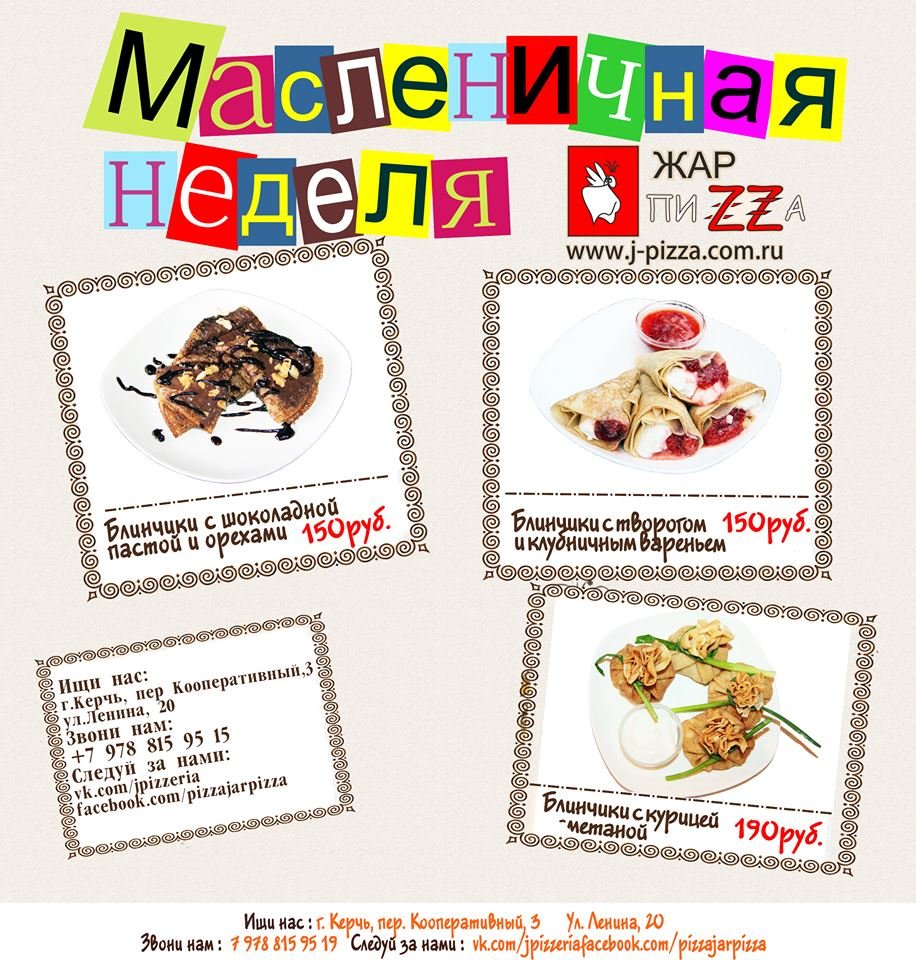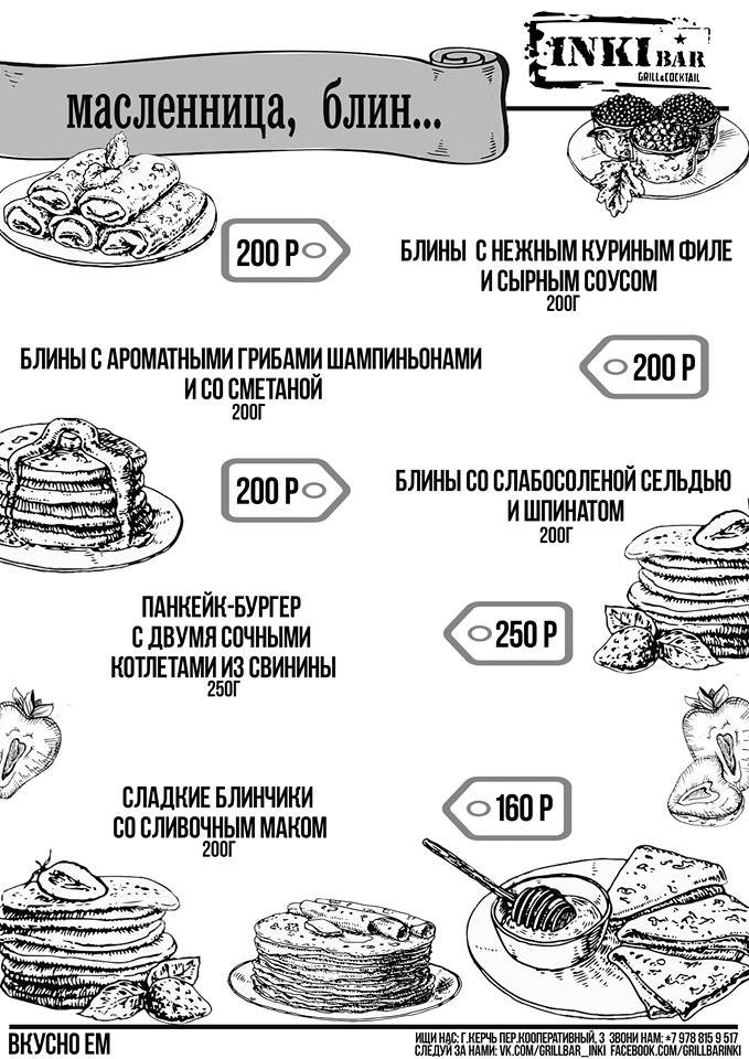 «INKI», «Твоя Веранда», «Жар-Пицца», «LaGrace» приглашают на масленицу.