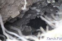 В Аджимушкае в глубокую яму упала собака. Об этом редакции Керчь.ФМ сообщил житель поселка. Как оказалось, мужчина 19 февраля в поле пас коз и услышал, что из-под земли лает собака. Он попытался ее самостоятельно достать из ямы, но у него не получилось. Животное пробыло в яме более суток. Мужчина обратился в пожарную службу, где ему сказали, что таким не занимаются. После этого он позвонил в редакцию Керчь.ФМ попросив о помощи.