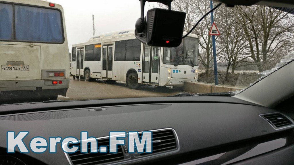 В редакцию Керчь.ФМ постоянный читатель прислал фотографию «Нефаза», который 27 февраля днем на гололеде вылетел на встречную полосу движения и врезался в бордюр. Авария произошла на ж/д переезде между Верхним Солнечным и Телецентром. Номер маршрута - 5.