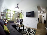 Площадь 80 кв.м., 2 отдельные спальни, гостиная-столовая 30 кв.м., интернет, отдельный вход со двора. Есть вся необходимая техника, кондиционер. Очень теплая квартира! Имеется своя стоянка и дворик для отдыха.