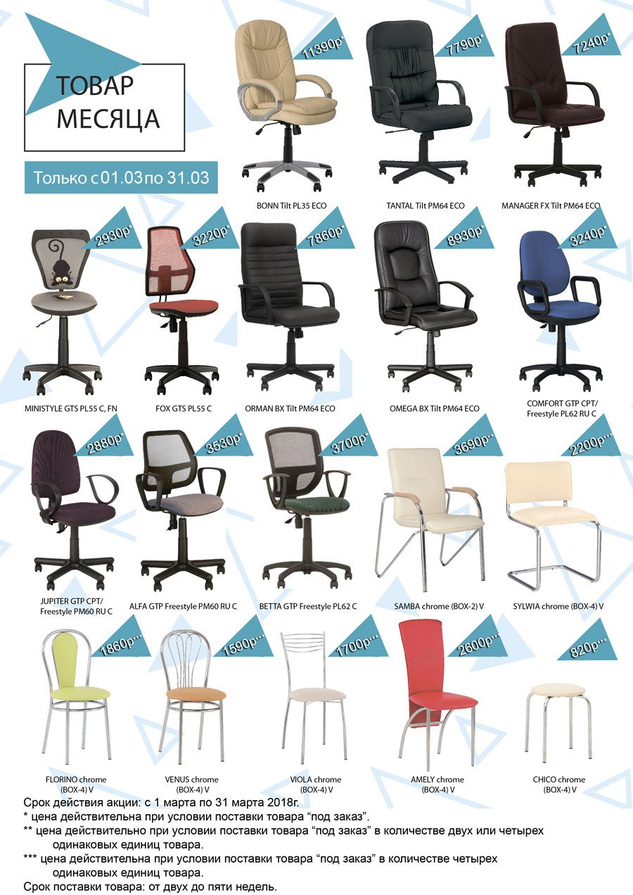 Скидки до 20% на кресла BONN, TANTAL, MANAGER, ORMAN, OMEGA; детские стулья MINISTYLE и FOX; компьютерные стулья ALFA, BETTA, стулья для кухонь, баров и кафе FLORINO, VENUS, VIOLA, AMELY, CHICO.