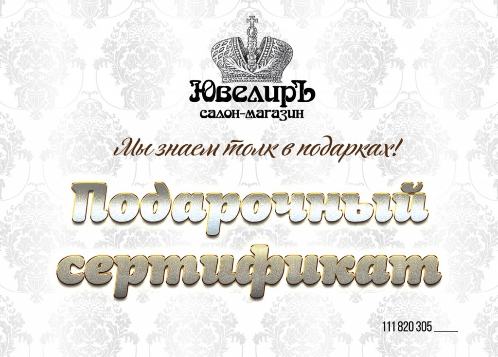 Подарочный сертификат на 1500 руб от салон-магазина «Ювелир»