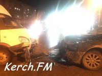 В Керчи в лобовую столкнулись маршрутка и иномарка